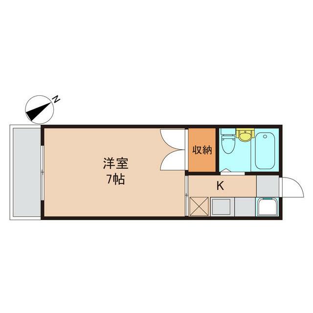 | 間取り | 1K(K2洋室7) | 主要採光面 | 南西 |
